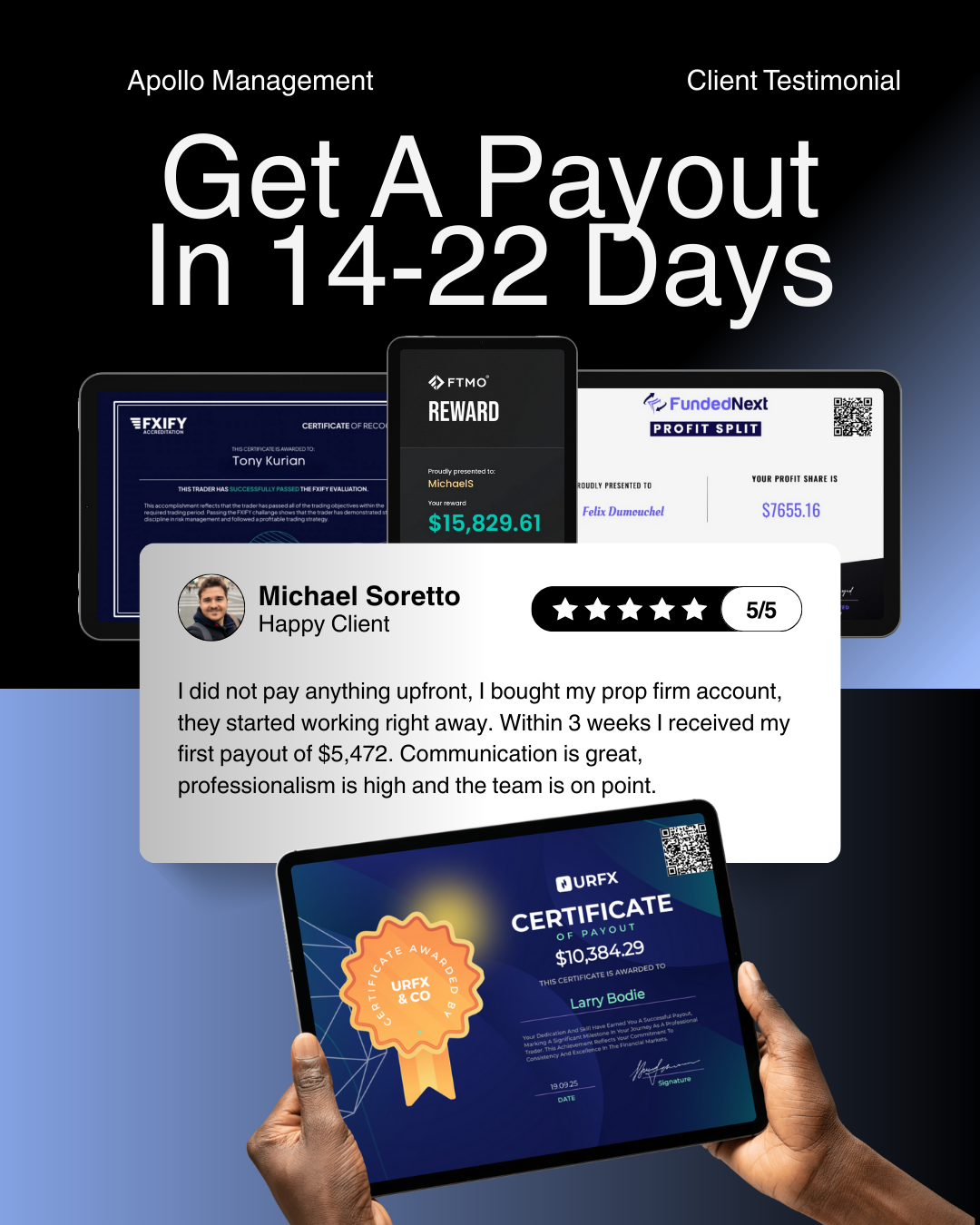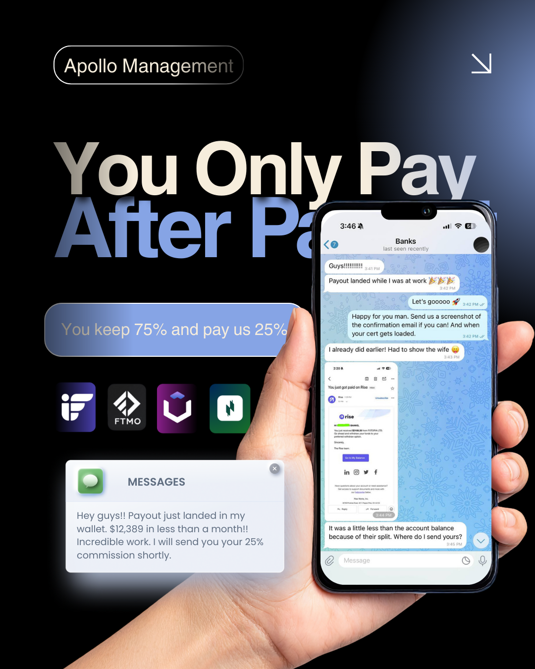 94% of clients who joined Apollo got their first payout in less than a month with a average payouts around $5,000.